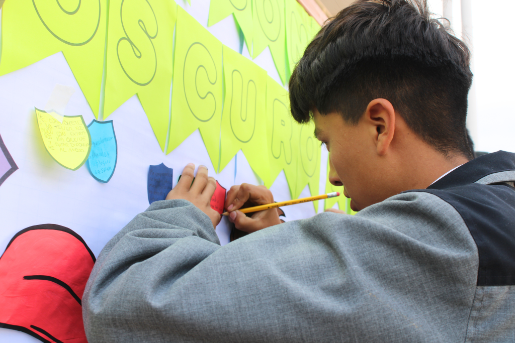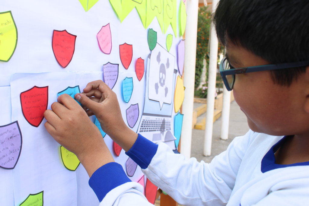 La jornada inició con una charla guiada por el especialista de la Defensoría, quienes compartieron consejos y reflexiones sobre cómo protegernos en el mundo digital. Luego, en el patio, durante el recreo, los jóvenes expresaron su creatividad en un panel de compromisos, escribiendo mensajes y consejos prácticos para usar de manera responsable las redes sociales y dispositivos digitales.