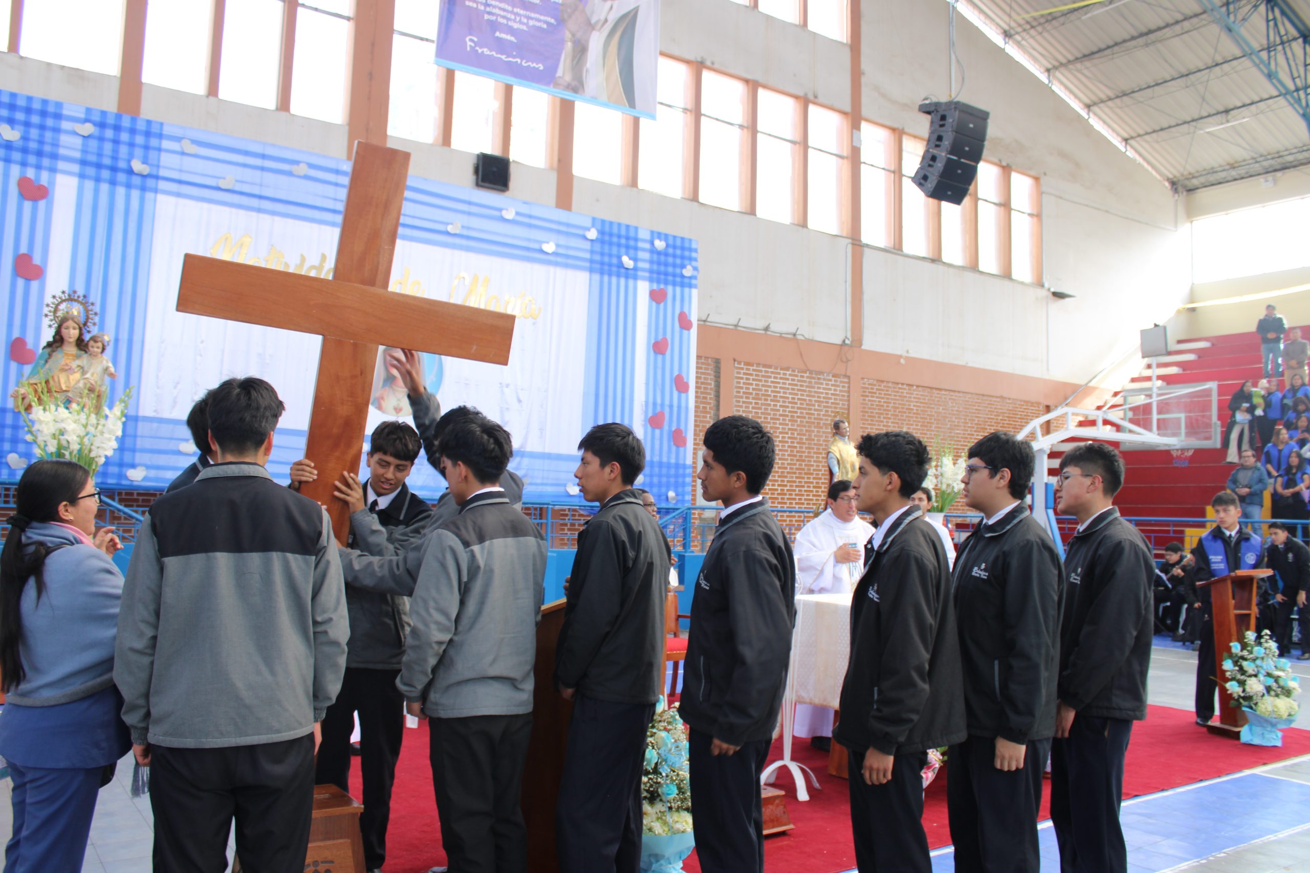 Con mucho fervor y espíritu juvenil, los estudiantes de la prepromoción llevaron en procesión la cruz hasta nuestra casa salesiana, gesto que fue recibido con aplausos, cantos y profunda devoción. Este acto simboliza la fe y la esperanza de los jóvenes salesianos, que, al estilo de Don Bosco, caminan juntos con alegría, responsabilidad y amor por la Iglesia. Como comunidad educativa-pastoral, renovamos nuestro compromiso de seguir viviendo bajo el amparo de María Auxiliadora, confiando en que Ella siempre nos guía, nos protege y nos acompaña en nuestro camino de fe y fraternidad.