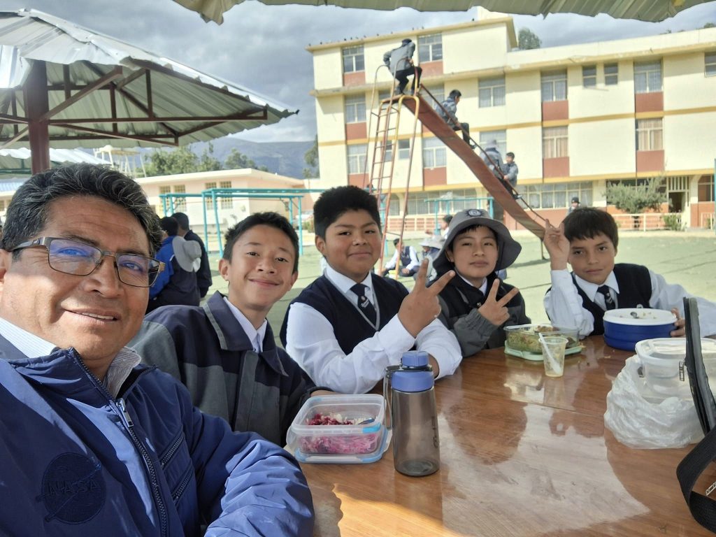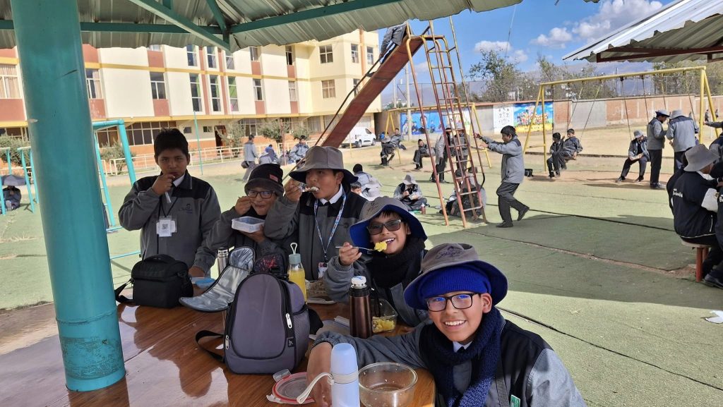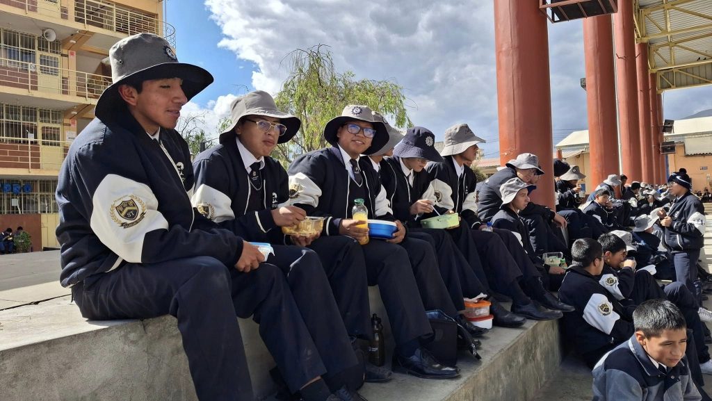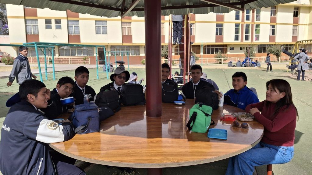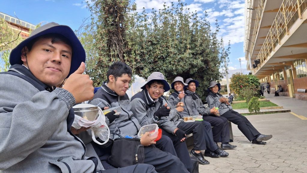Compartiendo momentos de fraternidad en la hora del almuerzo. «Los quiero ver felices aquí y en la eternidad» (Don Bosco)