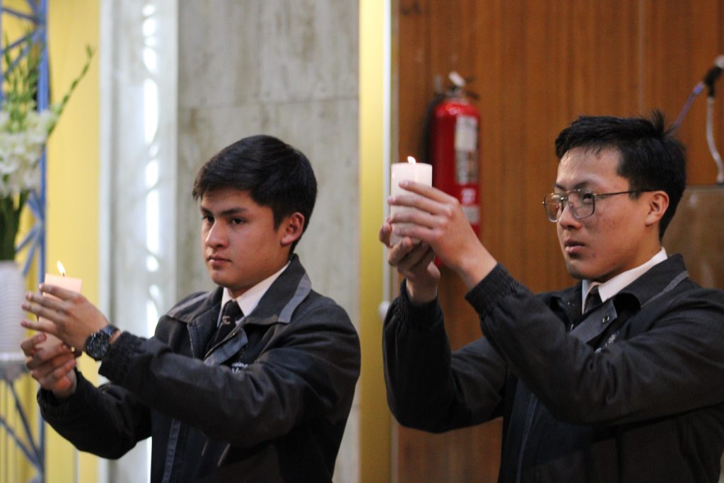La celebración inició con el rezo del Santo Rosario, momento de recogimiento y oración que dispuso los corazones para vivir con intensidad la jornada. A continuación, se celebró la Santa Eucaristía, presidida por el Padre Fredy Valdivia SDB, quien compartió una profunda reflexión sobre Don Bosco y la congregación salesiana. En sus palabras resaltó cómo, animado por la fuerza del Espíritu Santo y la confianza en María Auxiliadora, Don Bosco fundó la Congregación Salesiana con el único propósito de dedicar su vida a la educación y acompañamiento de los jóvenes más necesitados.