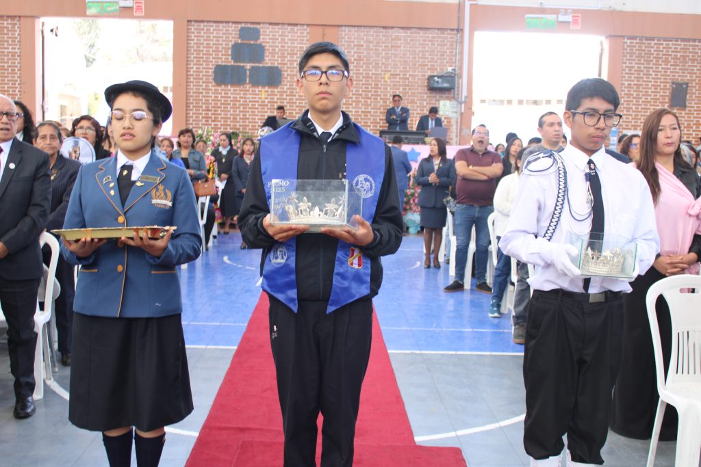 La coronación de la imagen de María y el Niño Jesús fue realizada por estudiantes de las promociones 2025 de los colegios Salesianos. Las ofrendas, con los símbolos de la novena, fueron llevadas con reverencia al altar, sellando el compromiso de seguir caminando con María.