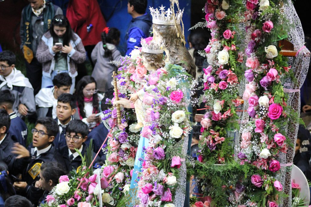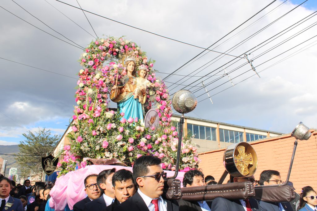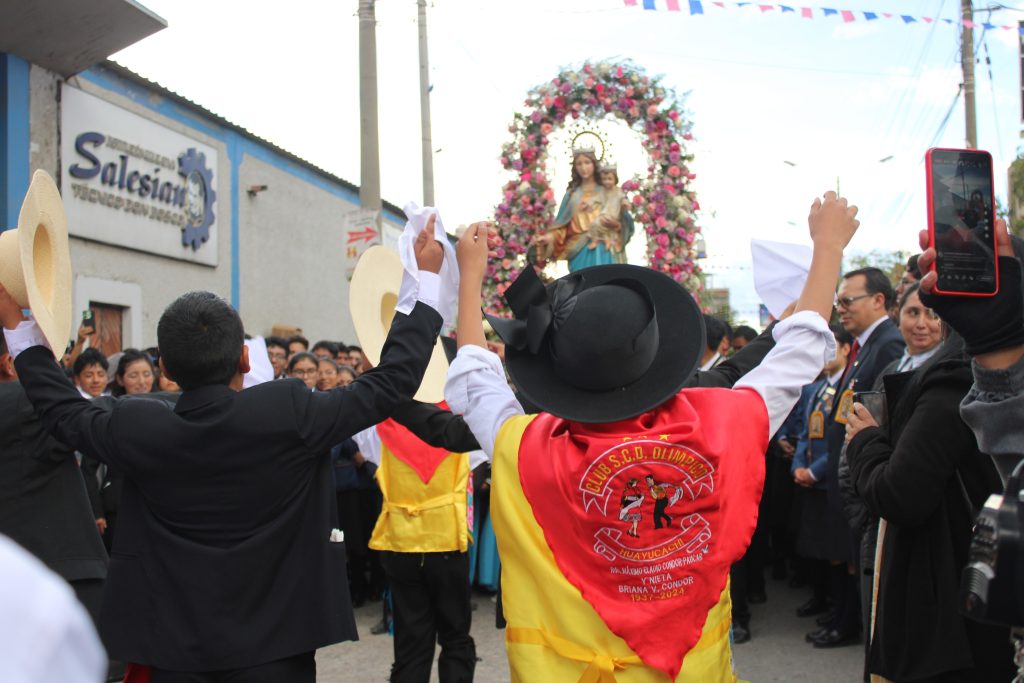 A las 3:45 p.m., comenzó la Solemne Procesión. Por primera vez, los profesores de los tres colegios entregaron el anda a la Promoción 2025 “Yánkuam’Jintia” del Colegio Don Bosco. La imagen fue llevada con fe y entusiasmo por las principales calles de la ciudad. Hubo danzas, cantos y homenajes a lo largo del recorrido.