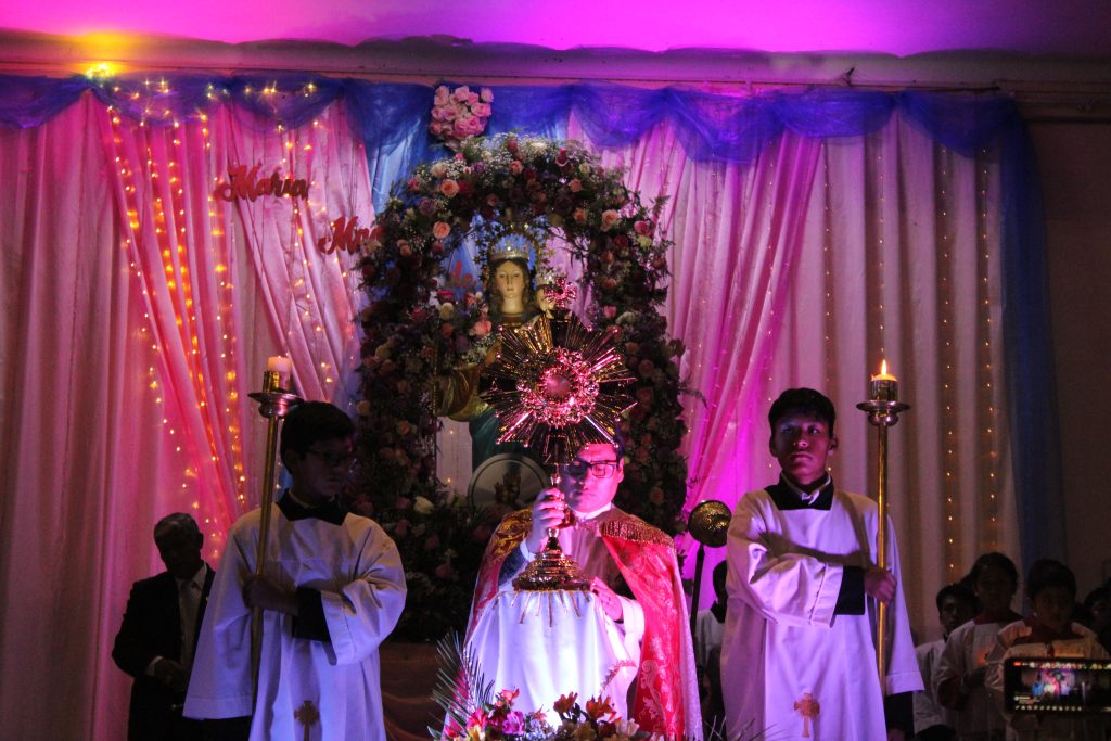 Finalmente, la Promoción “Vincenzo Cimatti” de Santa Rosa continuó la procesión por el Puente de la Calle Real, el Parque Don Bosco y las calles céntricas hasta ingresar triunfalmente al patio del colegio, donde se expuso al Santísimo y se nos dio la bendición final el P. Saúl Quispe Caballero SDB y cerrando de esta manera la Fiesta de María Auxiliadora, este año bajo el lema: “María, Madre de la Esperanza”.