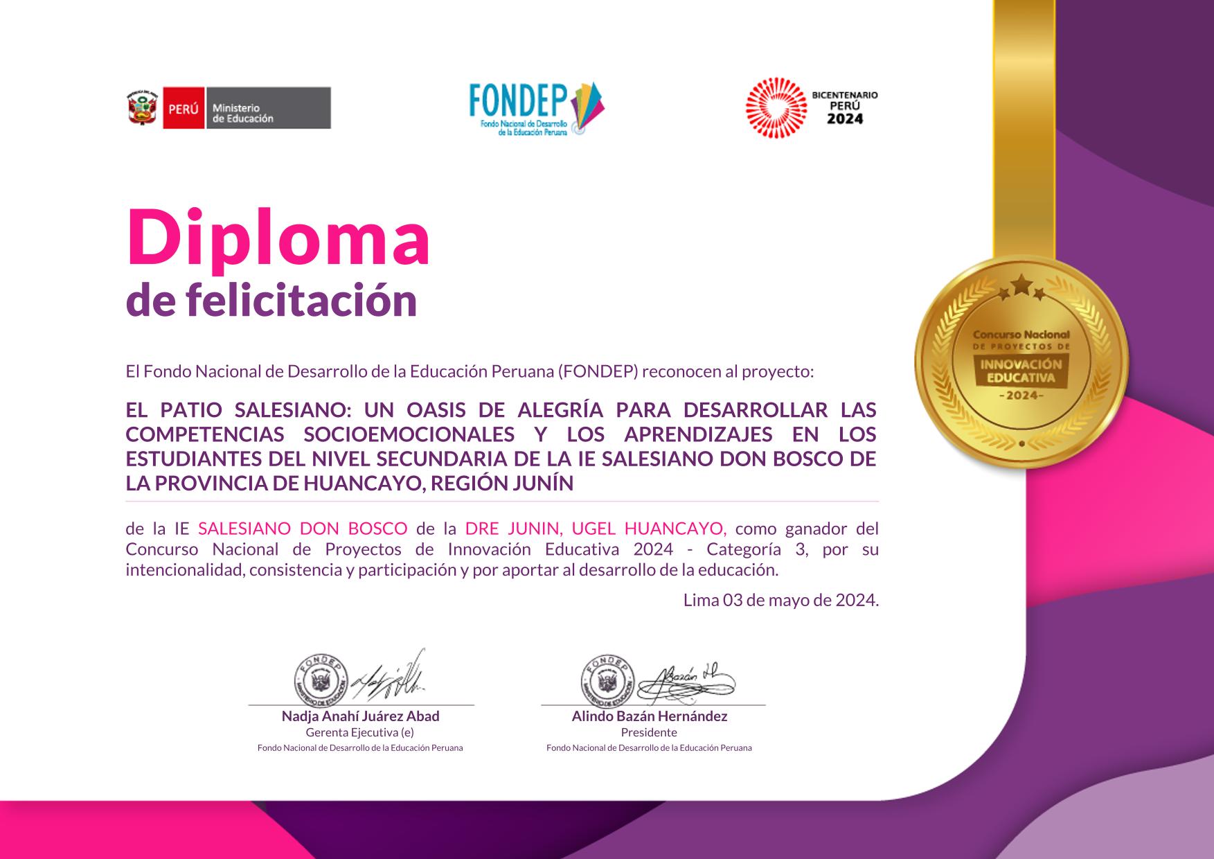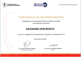 En el colegio nuestros jóvenes desarrollan habilidades técnicas en los talleres como: Carpintería, Electricidad, Electrónica, Mecánica de soldadura y producción, Dibujo Técnico. Al finalizar su educación secundaria obtienen una certificación por el Cetpro Salesiano Don Bosco a nombre del Ministerio de Educación.Nuestra institución es parte de la Red de Colegios Salesianos a nivel nacional, que se encuentran ubicados en Arequipa, Cusco, Ayacucho, Huancayo, Lima, Callao, Piura, Loreto y Pucallpa.