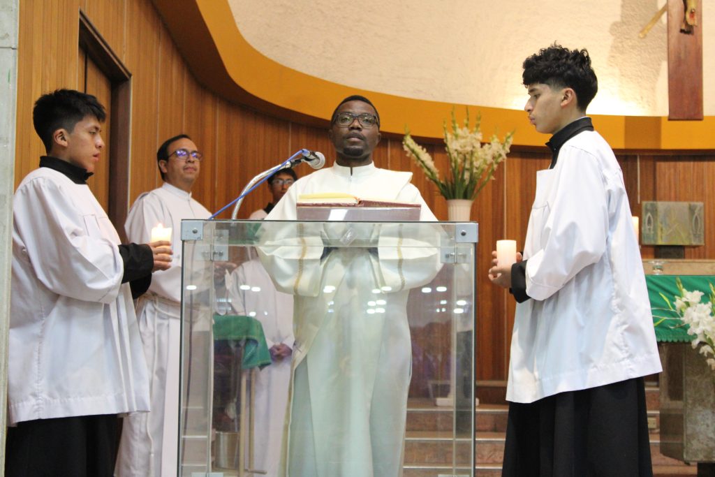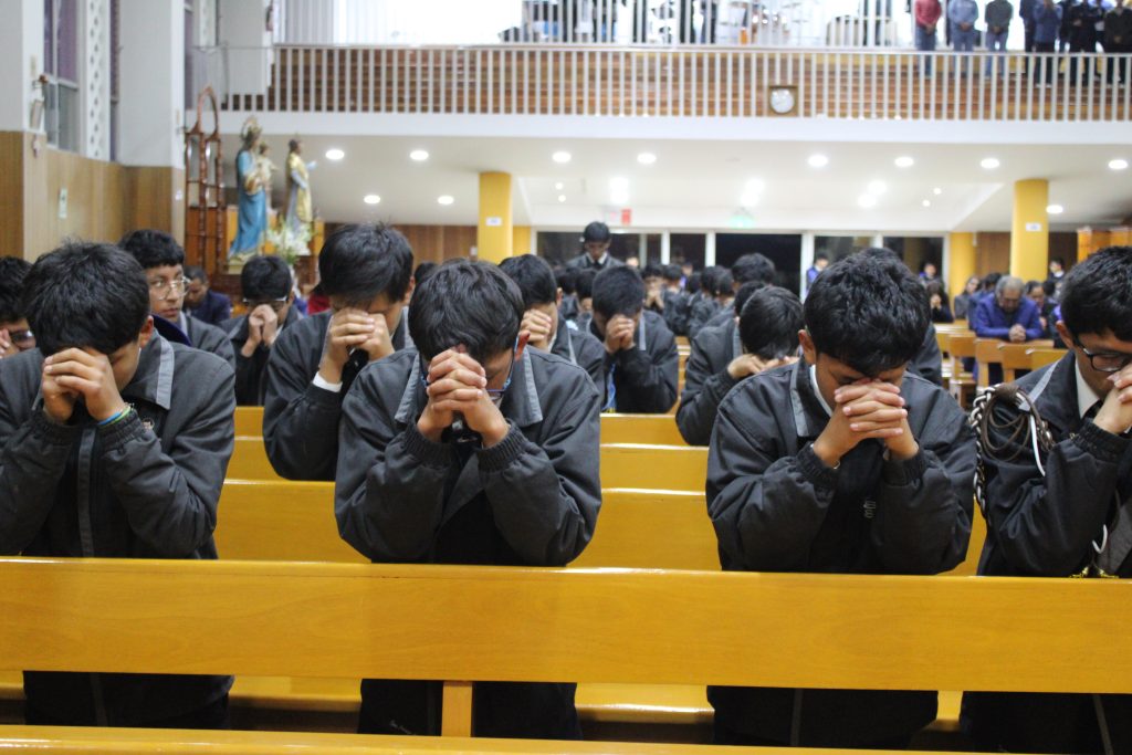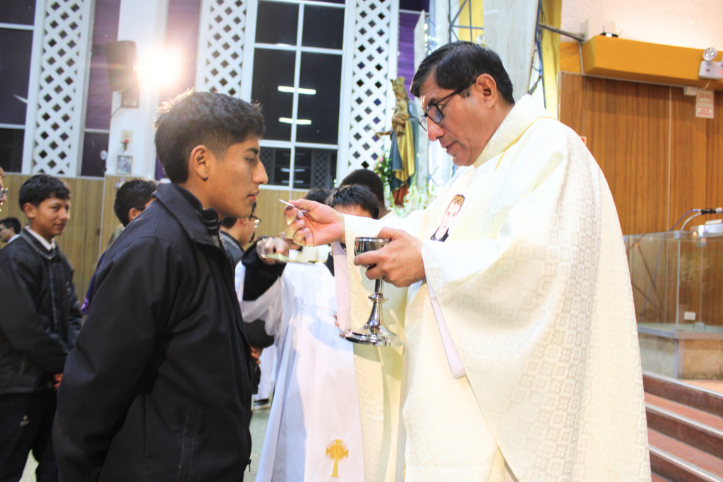 La jornada inició con el rezo del Santo Rosario, un espacio de recogimiento y oración que preparó los corazones para vivir intensamente la celebración. Posteriormente, se celebró la Santa Eucaristía, presidida por el Padre Humberto Chávez SDB, quien en su homilía abordó como tema central la etapa de estudio, colegio y seminario de Don Bosco. Con palabras llenas de cercanía y reflexión, recordó cómo la dedicación, la disciplina y la fe fueron pilares en la formación de Juan Bosco, inspirando a todos a perseverar en el camino de la educación y el crecimiento personal.